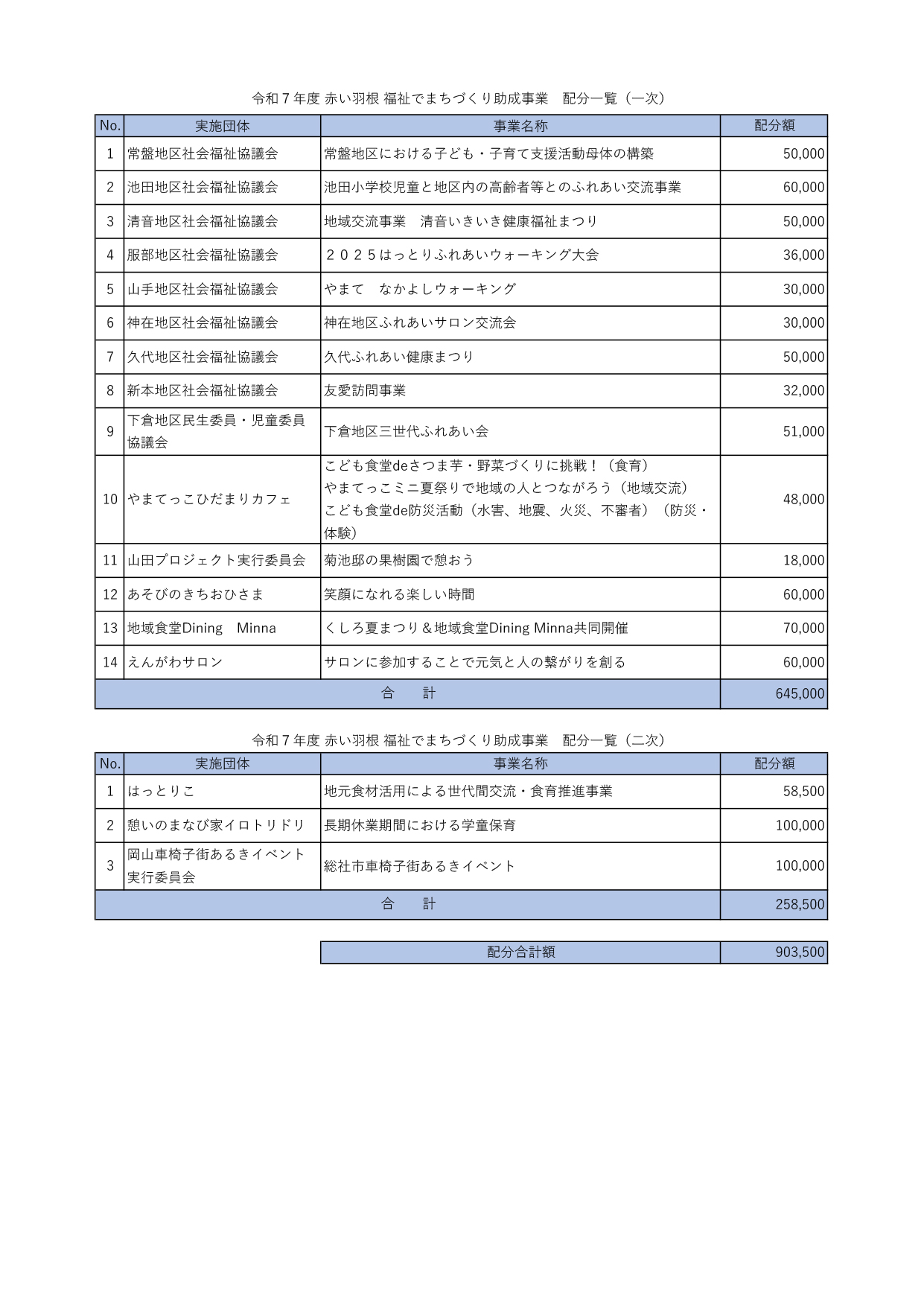 令和7年度 赤い羽根福祉でまちづくり助成事業 配分決定について